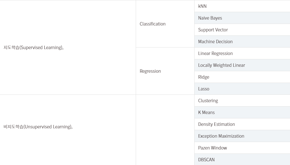 머신러닝의 종류