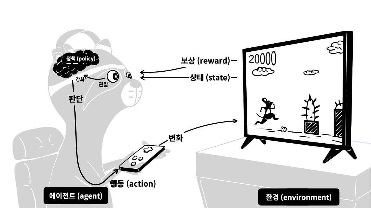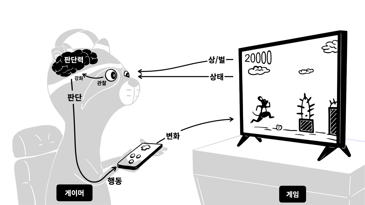 3. 이 보상을 기반으로 정의된 주체는 더 많은 보상을 얻을 수 있는 방향(best action)으로 행동을 학습하게 된다.