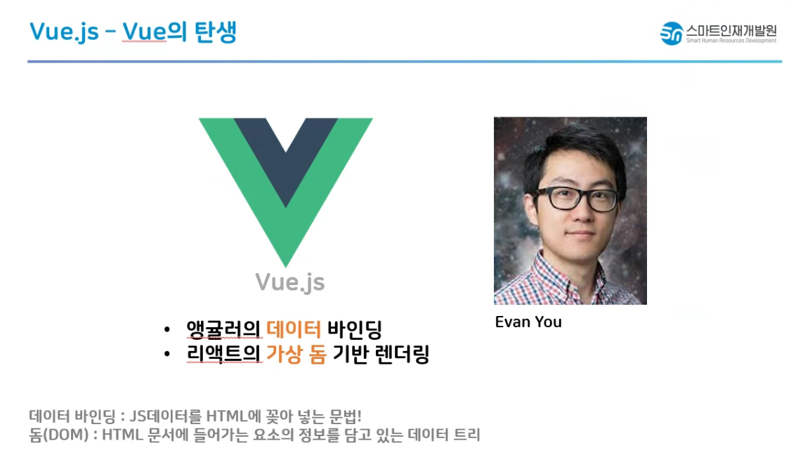 본 내용은 스마트인재개발원 랩실에서 4주 차 발표에 진행했던 Vue.js 주제를 가지고 포스팅했습니다.