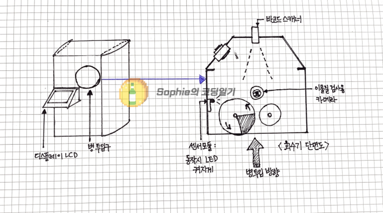 우리 팀은 소주병, 맥주병을 반환하면 일부 돈으로 바꿔주는 '빈용기환급금제도'를 이용한 기존의 무인 공병회수기에서 좀 더 발전된 방향으로 모색해보자! 라는 부분에서 프로젝트의 방향을 잡게 되었습니다.