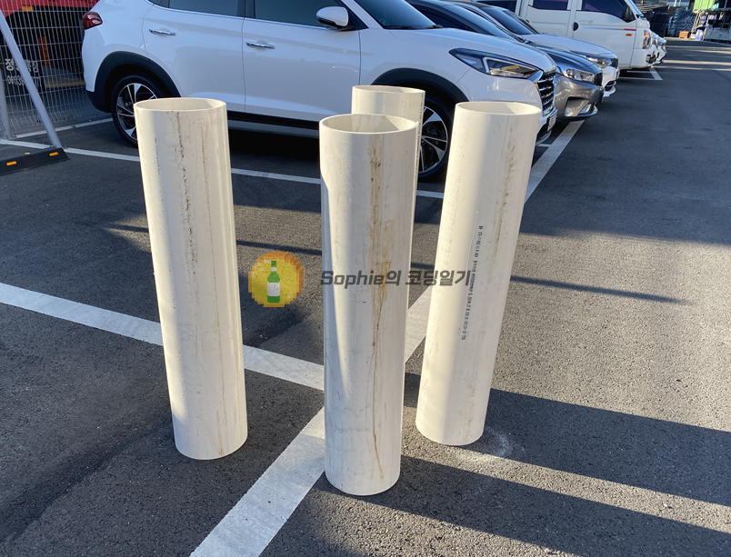 PVC 파이프를 써 볼려고 했던 이유는 일단 다양한 내부 지름의 파이프들이 있고 재질 또한 튼튼하고 가공이 비교적 쉬워서 선택을 하였는데 직접 재료를 구하려고 알아보다보니 시중에 구매할 수 있는 파이프는 기본이 4M 단위로 나와있었습니다. 우리는 고작 35cm 정도가 필요할 뿐이었는데 나머지를 처리하기 어려울뿐더러 가져가는 부분에서도 문제가 있었습니다. 그래서 팀장님과 제가 한참 더울 때 정말 땀을 줄줄 흘리면서 공구거리의 여러 자재점을 찾아서 문의했던 기억이 납니다.. ㅜㅜ