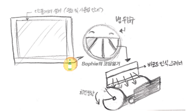 그런데 우리 팀의 회수기에 스케치를 보시면 알겠지만, 병을 넘겨주는 롤러부분을 어떻게 구현할 것인가 하는 부분에서 고민이 많았습니다.