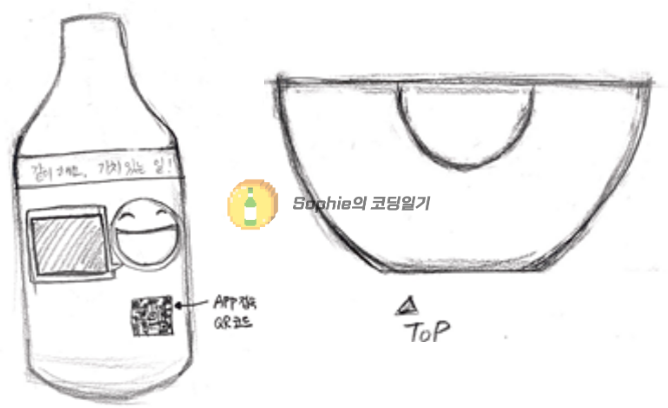 기존의 일반적인 박스형태의 회수기 모양에서 벗어나서 좀더 다양한 모양으로 접근해보면 좋을 것같아서 병모양의 일부를 잘라온 모양을 차용해서 회수기 전체적인 외관을 정하게 되었습니다 😊👍