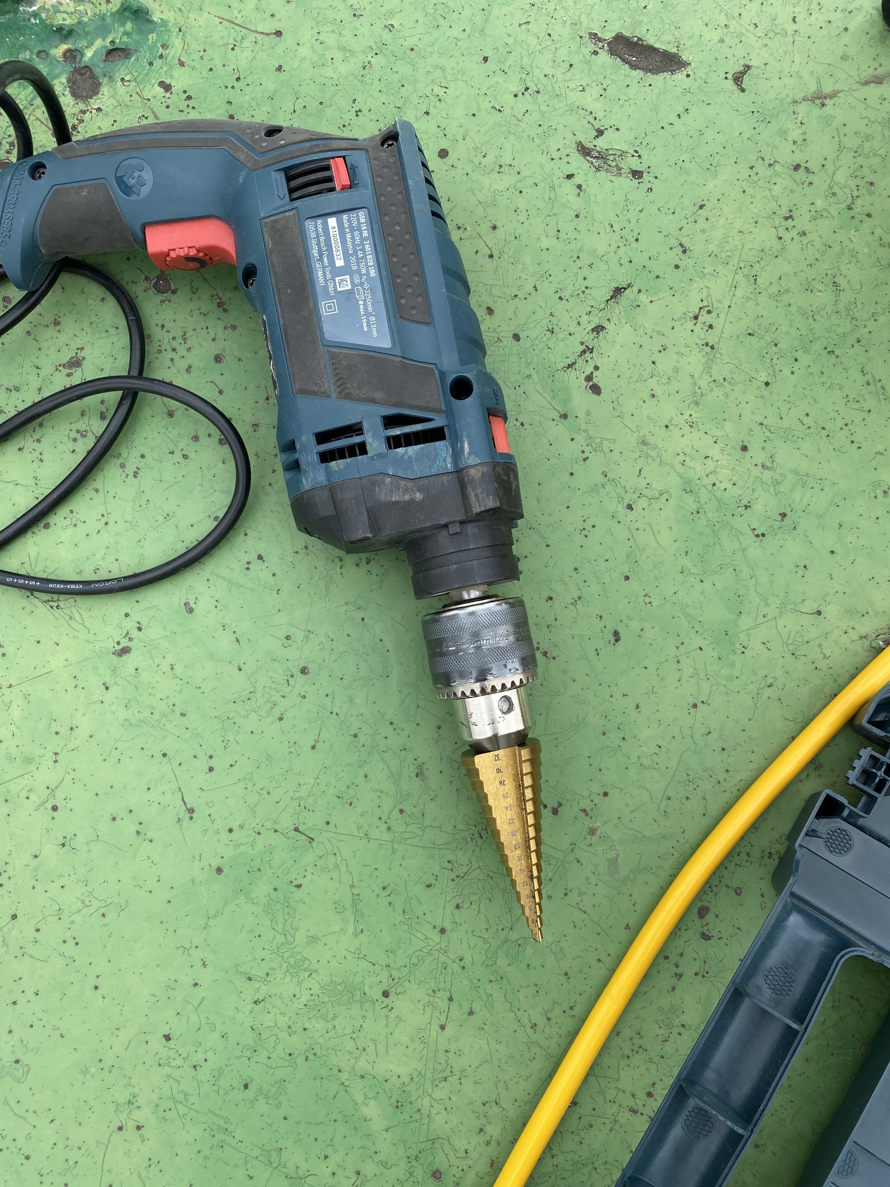 전기 릴선과 전동 드릴을 빌려서 스마트인재개발원 충장로점 (스마트인재캠퍼스)이 있는 건물 옥상에서 필요한 구멍을 뚫었습니다