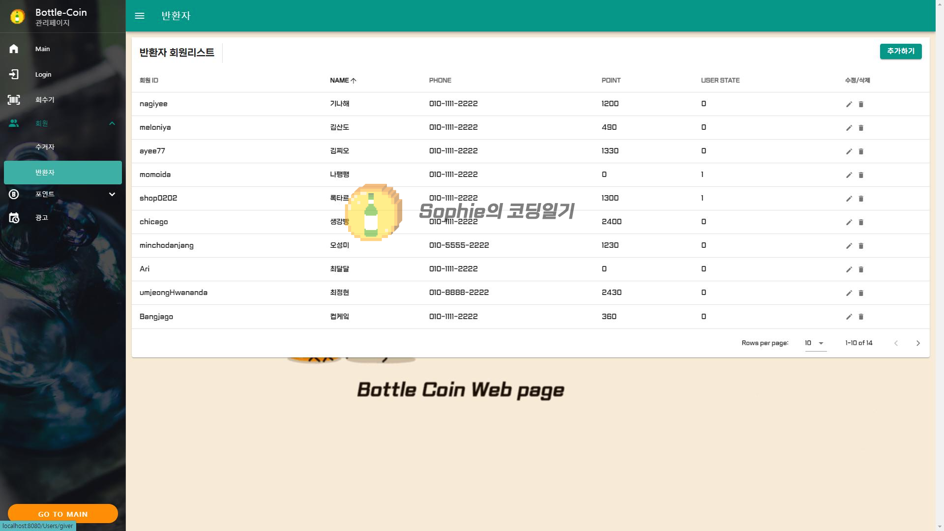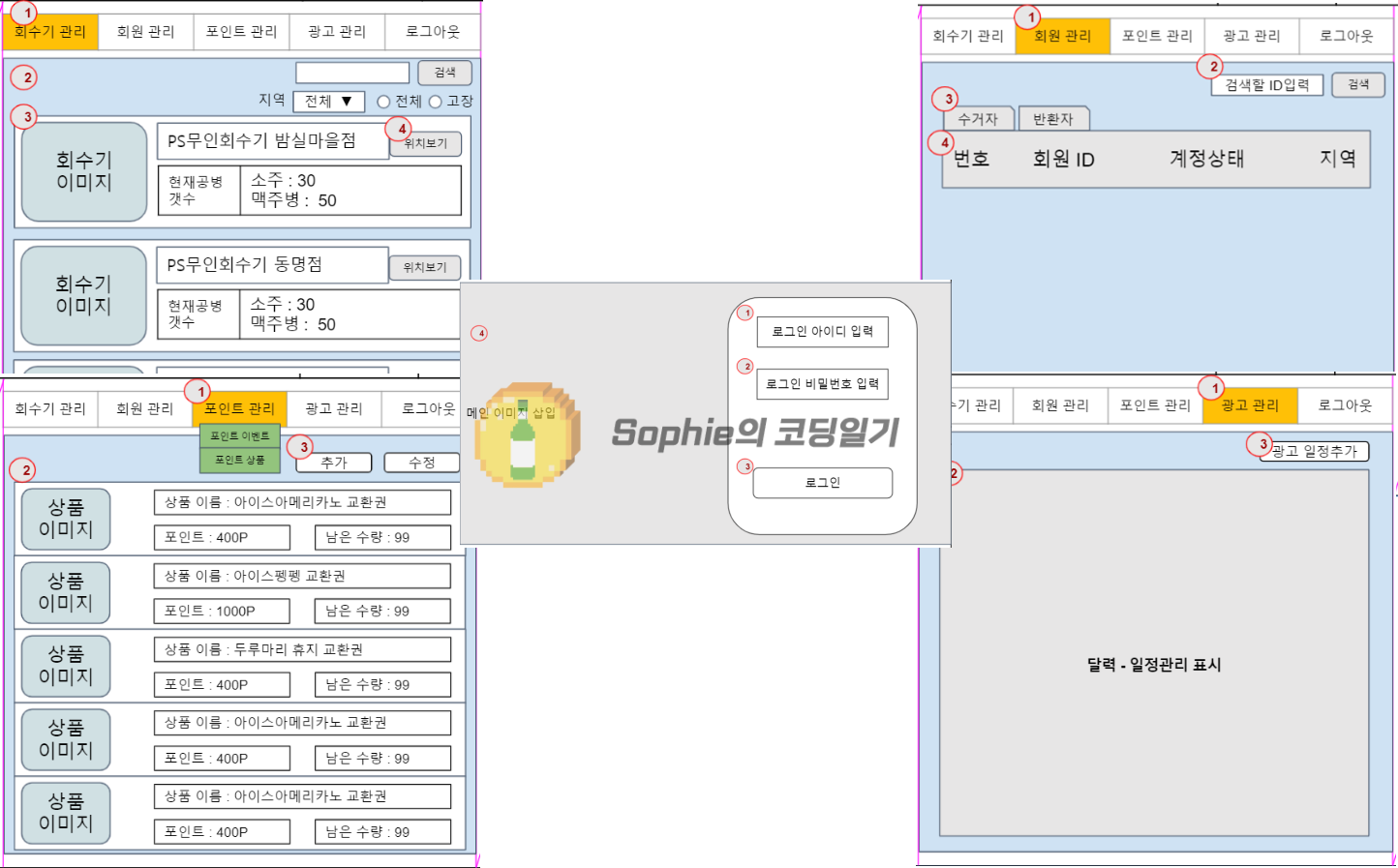 그렇기 때문에.. 회수기 / 회원 / 포인트 / 광고의 전반적인 관리를 할 수 있는 내용이 꼭 들어가야 했습니다.